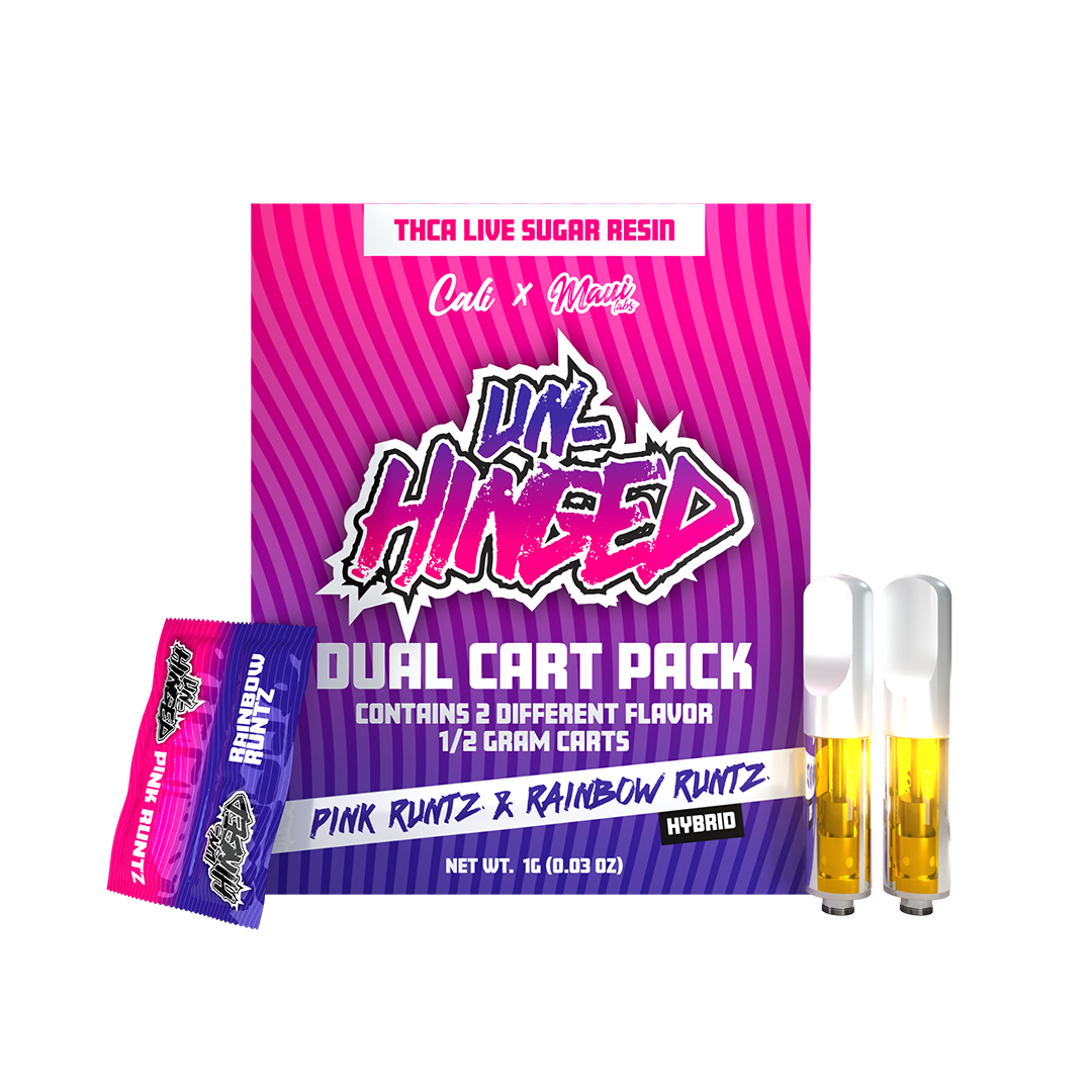 The Cali Vape Pink Disposable Runtz + Rainbow Runtz (Hybrid) Dual Cart – Unhinged is a high-quality, hybrid vape cartridge designed for adult users who seek convenience and flavor variety in one device. Combining two popular Runtz strains, this dual cart offers a versatile and potent vaping experience in a single, portable unit.
